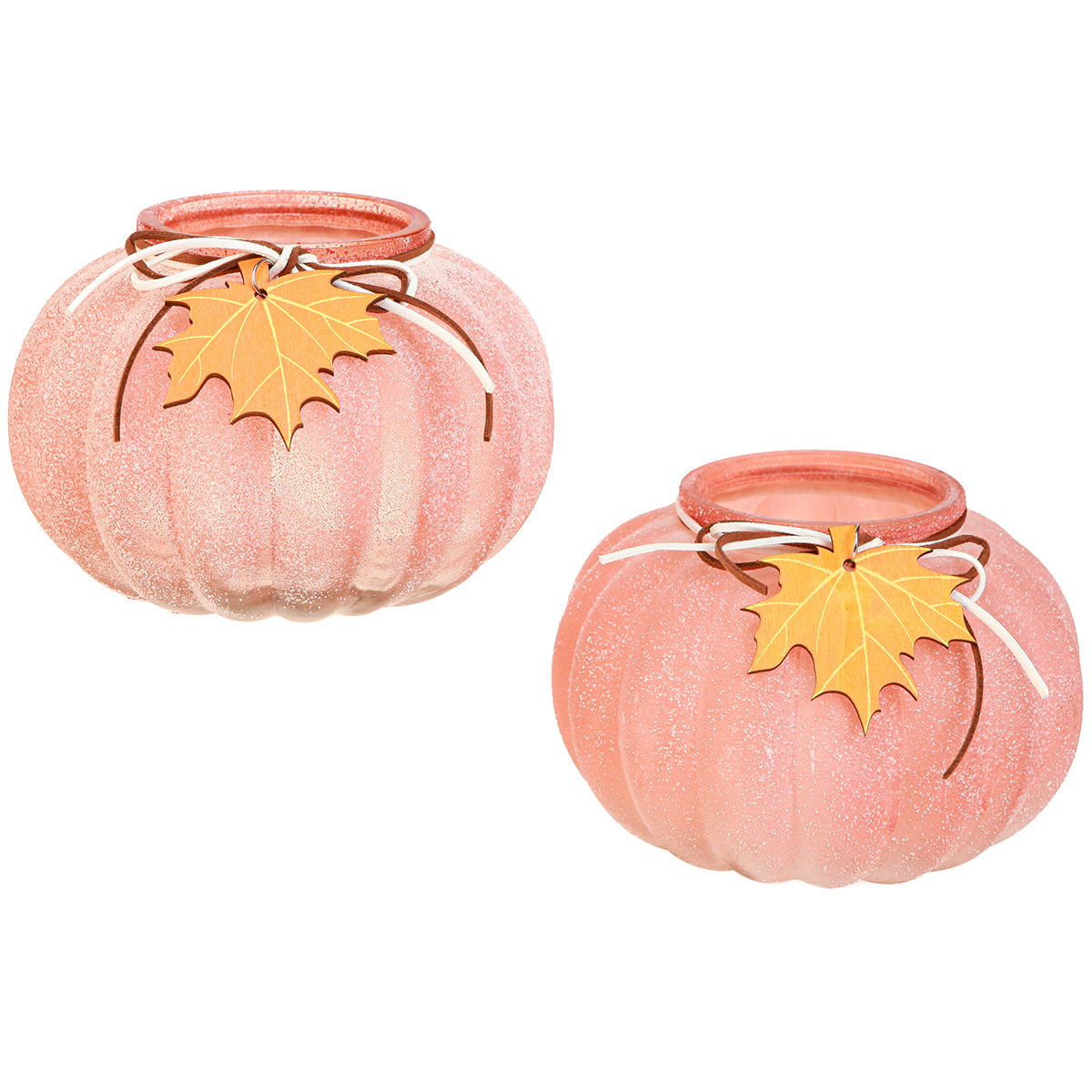 Lanterna de vidro abóbora tealight fosco Ø16cm Alt.11cm 2 unidades