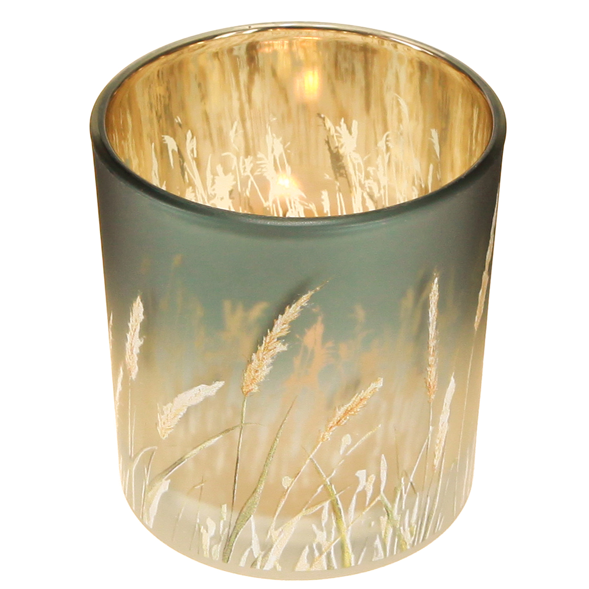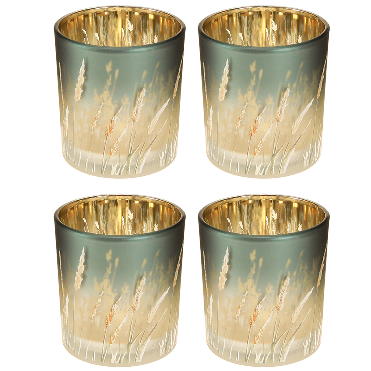 Lanterna decorativa de vidro com desenho de grama para dar um toque especial ao ambiente, azul, 8cm, conjunto de 4 peças.