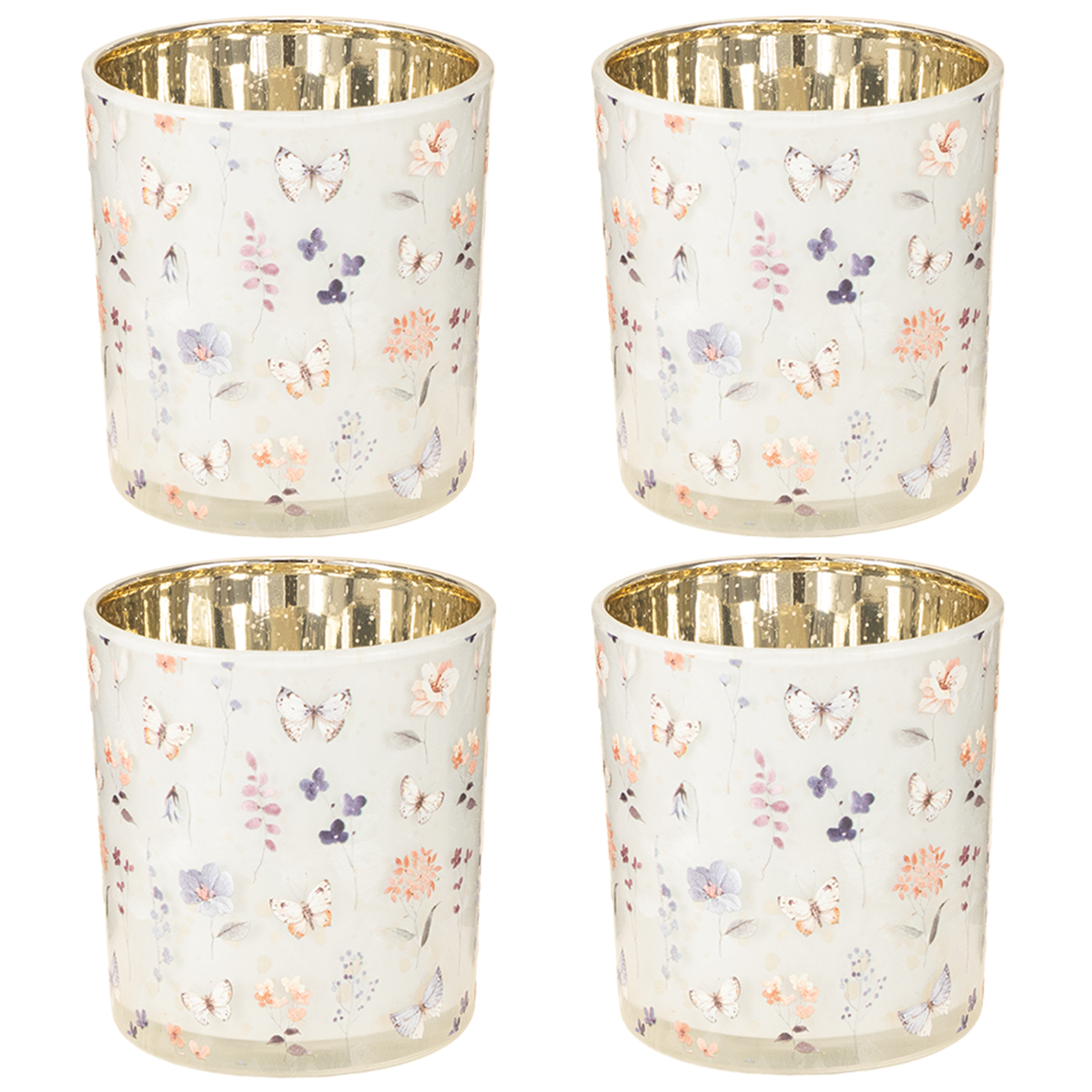 Lanterna decorativa de vidro com design de borboleta para dar um toque de estilo à sua casa, 8 cm, conjunto de 4 peças.