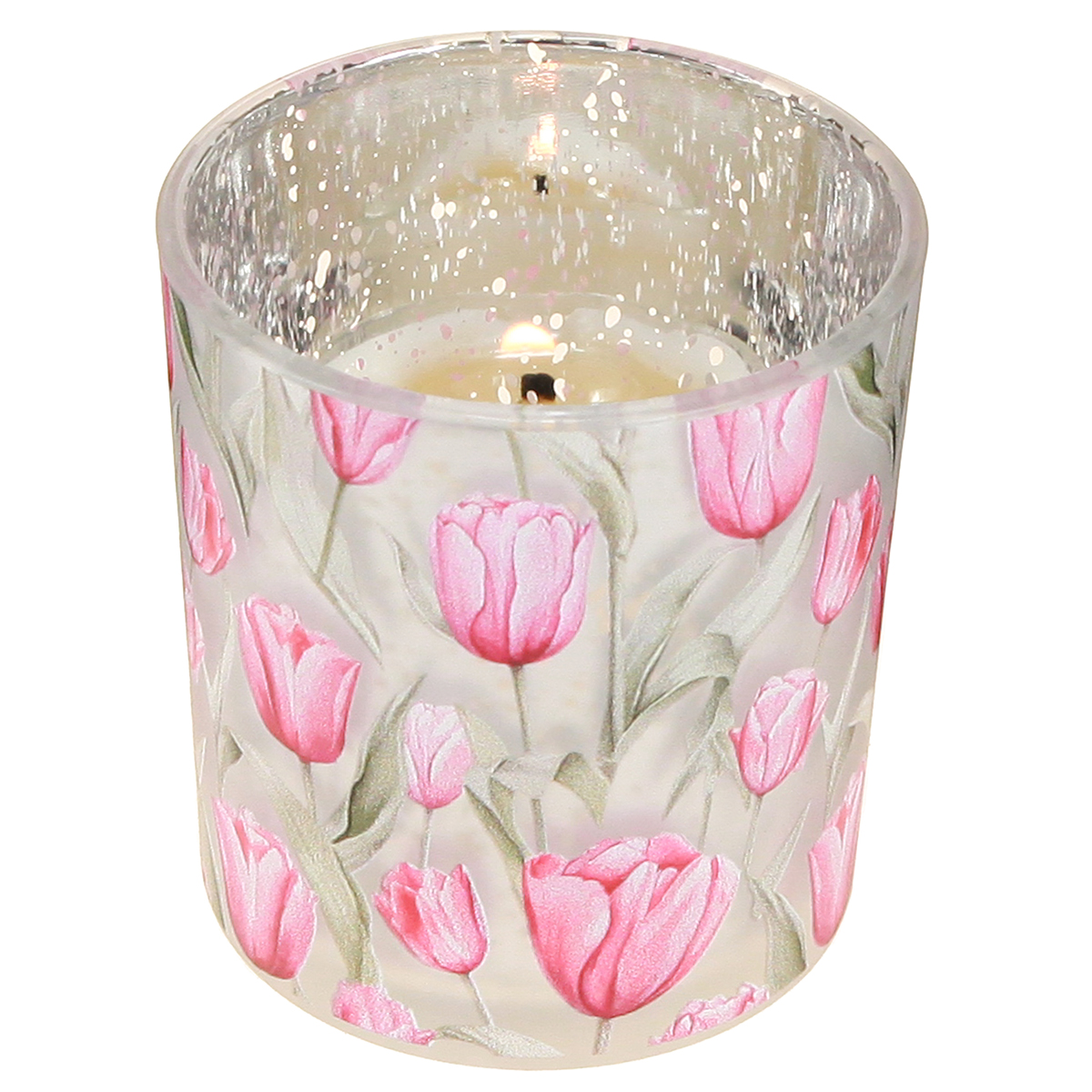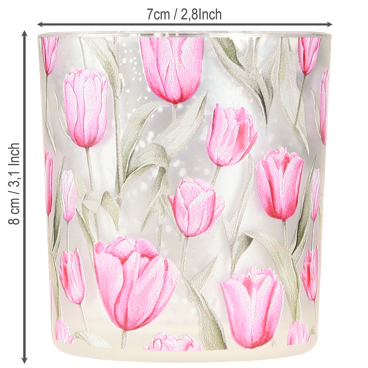- Vidro de alta qualidade com um motivo de tulipa rosa