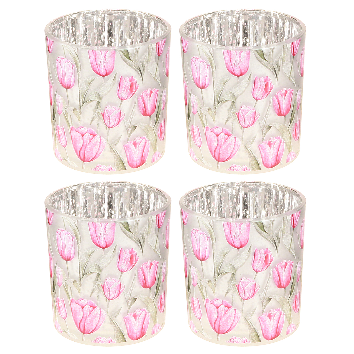 Lanterna decorativa de vidro com design de tulipa para decoração de primavera, 8 cm, conjunto de 4 peças.