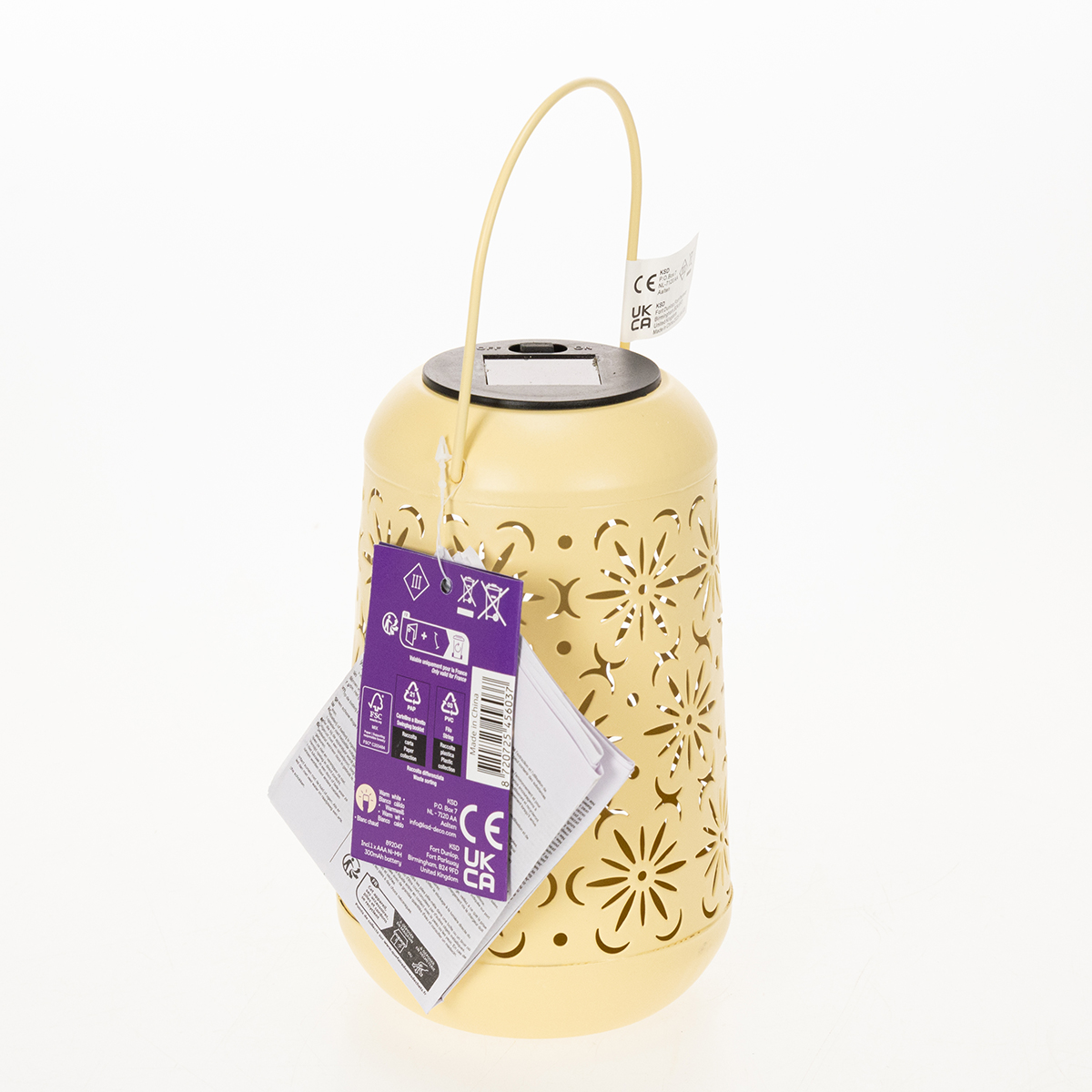 Com 18 cm de altura sem a alça e 26 cm com a alça, esta lanterna tem o tamanho perfeito para atrair olhares discretamente, sem ser intrusiva. O metal resistente em um tom amarelo suave harmoniza-se lindamente com outros tons pastel e materiais naturais, conferindo à lanterna um toque de charme boho. Sua fonte de luz LED integrada tem longa duração, enquanto a pilha AAA recarregável inclusa garante um uso sustentável.