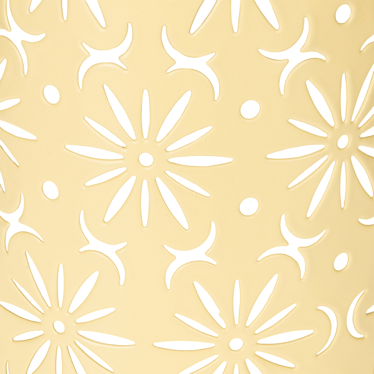 - Material: Metal resistente na cor amarela com estampa floral.