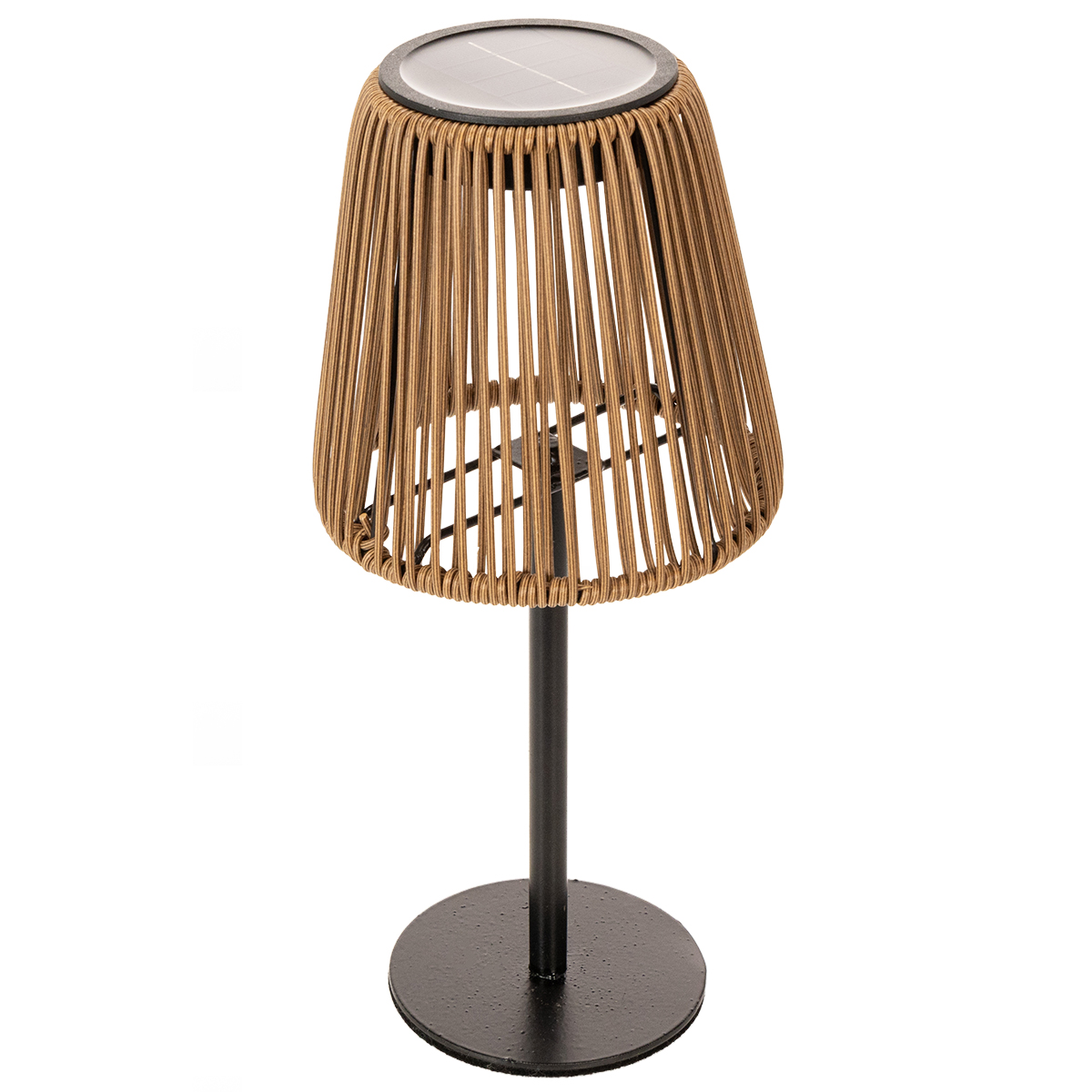 Este candeeiro de mesa decorativo é mais do que um simples acessório prático. Combina tecnologia ecológica com um design atraente. Feito de metal robusto e com um abajur de plástico com aparência de rattan, o candeeiro solar exala elegância intemporal, trazendo um toque natural e acolhedor a qualquer espaço exterior. Com 31 cm de altura e 13 cm de diâmetro, é compacto, mas suficientemente marcante para se destacar como um elemento decorativo elegante. A iluminação LED branca quente cria um ambiente agradável. Seja na varanda, ao lado de caminhos de jardim ou como iluminação de destaque numa festa no jardim, este candeeiro certamente chamará a atenção. A energia solar é particularmente conveniente. O candeeiro carrega durante o dia e ilumina à noite sem custos de eletricidade. É uma peça que se integra facilmente em vários estilos, como o boho ou o rústico. Impressiona não só visualmente, mas também pela sua durabilidade e materiais resistentes às intempéries. Qualquer pessoa que goste de adicionar toques decorativos ao seu espaço exterior ficará encantada com este candeeiro. Combina na perfeição com outros elementos decorativos naturais, como lanternas de madeira ou vasos de betão.