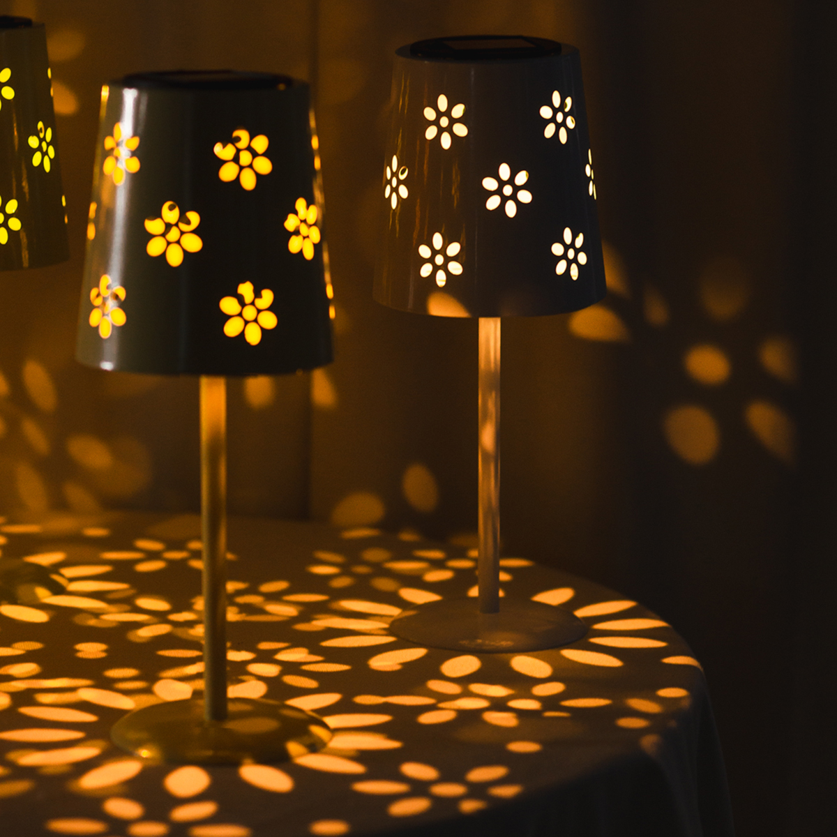 Luminária de mesa solar com LED – Iluminação ambiente com design floral