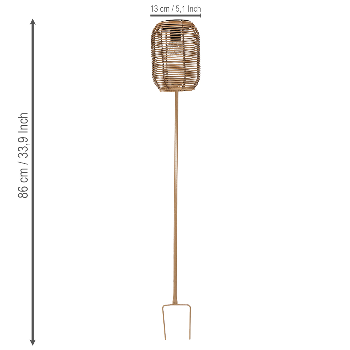 Com 86 cm de altura, ela se destaca com estilo sem ser intrusiva. Seu diâmetro de 13 cm a mantém compacta, permitindo que se integre perfeitamente a qualquer ambiente. Seja para iluminar um cantinho aconchegante perto do lago, sinalizar o caminho até o galpão do jardim ou adicionar um toque acolhedor à sua varanda, esta luminária solar serve a diversos propósitos decorativos. Sua fácil instalação a torna ideal para entusiastas do "faça você mesmo" e, por ser sem fio, você pode movê-la para onde quiser.