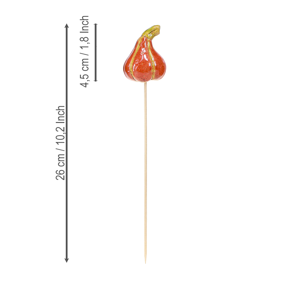 Nossas lindas e coloridas mini abóboras no palito são carinhosamente feitas de cerâmica e são a escolha ideal para uma decoração estilosa de outono! Com sua pintura e acabamento detalhados, essas abóboras decorativas oferecem uma paleta vibrante de cores outonais: laranja, marrom e bege. Montadas em um longo palito de madeira, as abóboras podem ser elegantemente integradas a arranjos florais e adicionar toques criativos a guirlandas de outono individuais. Essas mini abóboras são perfeitas para decorações de mesa outonais ou como decorações de janelas atmosféricas. Seja em vasos, vasos de plantas decorativos ou como decoração de festas e eventos – essas abóboras coloridas criam um visual harmonioso e vibrante. Deixe sua criatividade fluir e embeleze presentes ou adicione toques individuais a projetos criativos de artesanato. Perfeitas para amantes de artesanato, pessoas criativas e entusiastas do faça você mesmo, essas abóboras de cerâmica trazem a beleza do outono diretamente para sua casa.