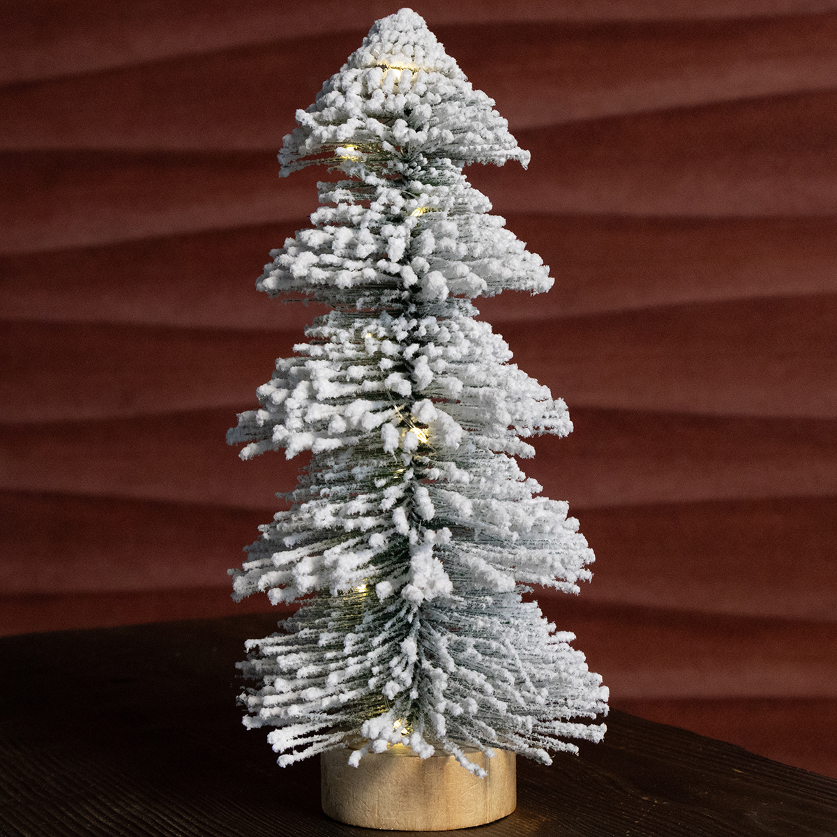 Mini árvore de Natal iluminada LED abeto com neve 28cm