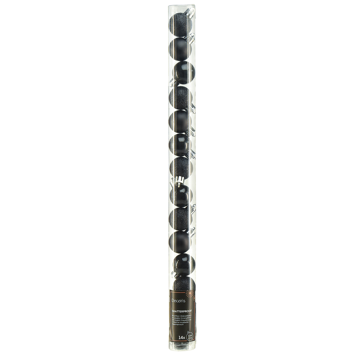 Descubra a coleção requintada dos nossos mini enfeites de árvore pretos na cor preta! Estas 14 bolas de Natal elegantes e inquebráveis são obrigatórias em qualquer decoração festiva. Com um diâmetro de apenas cerca de 3 centímetros, estas pequenas bolas pretas adaptam-se perfeitamente ao seu ambiente de Natal. As bolas pretas da árvore harmonizam-se particularmente bem com as decorações de Natal prateadas ou douradas. As superfícies mate, brilhantes e refinadas com glitter preto oferecem uma paleta de design diversificada e mostram habilmente a sua criatividade.