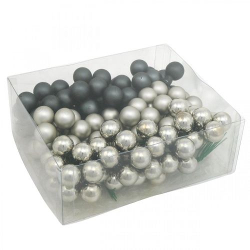Mini bolas de Natal antracite, espelho prata bagas Ø20mm 140 peças