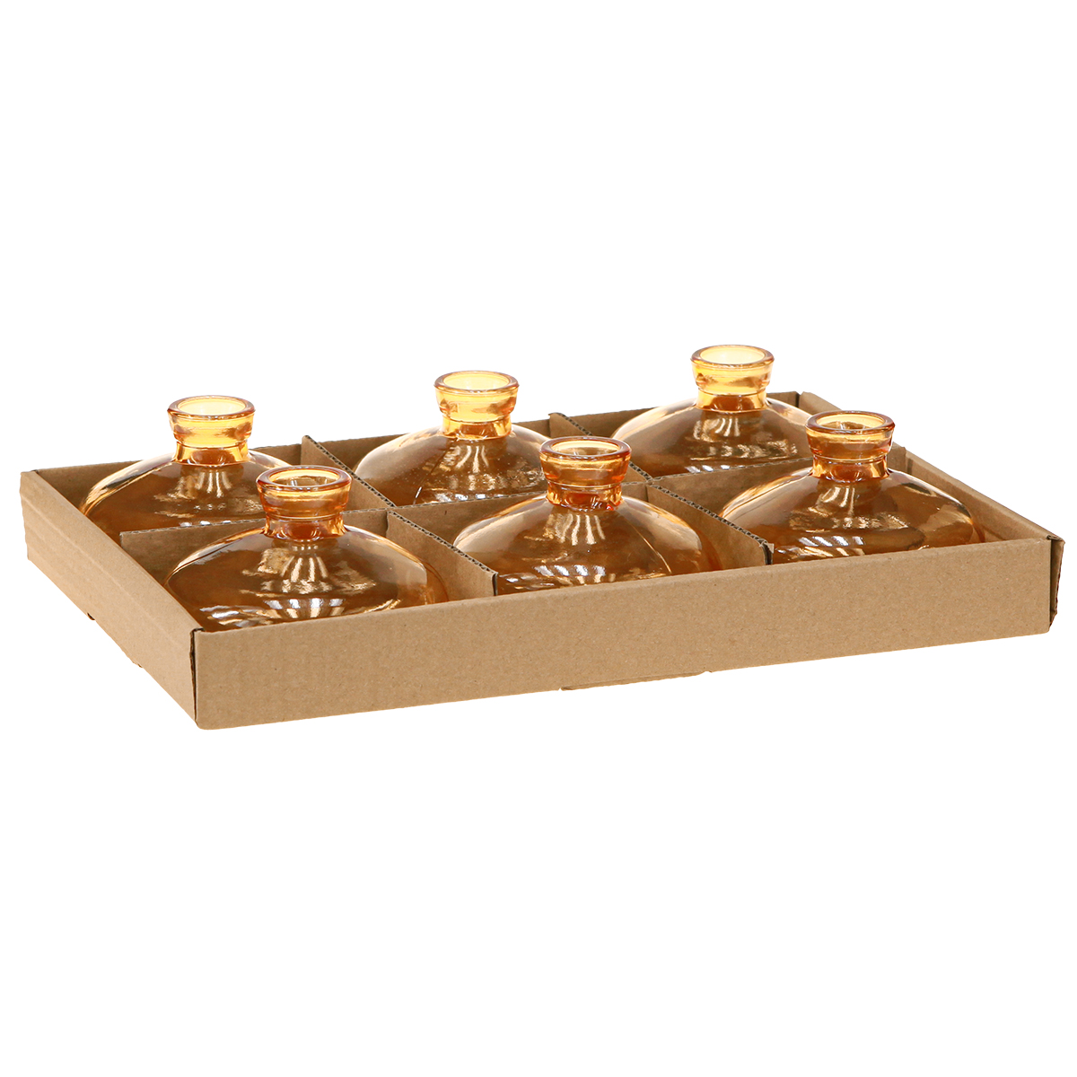 Nome do produto: Mini vasos de vidro bulbosos planos na cor laranja Ø9cm 6 peças