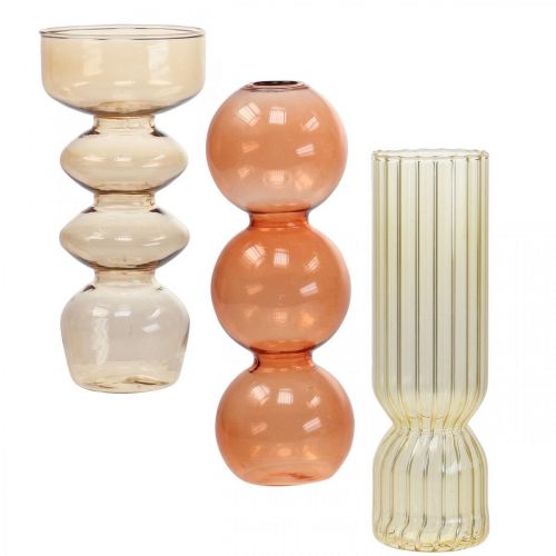 Mini vasos Vasos de vidro decorativos coloridos Altura 15,5-17 cm Conjunto de 3