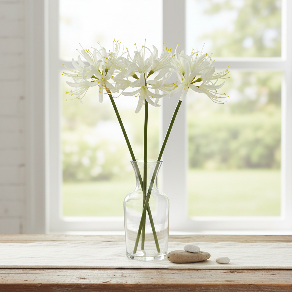 Adicione um toque de elegância à sua casa com Nerine como flor artificial. Esta linda Nerine artificial, também conhecida como lírio de Guernsey, é ideal para quem quer desfrutar de flores desabrochando o ano todo sem se preocupar com manutenção.