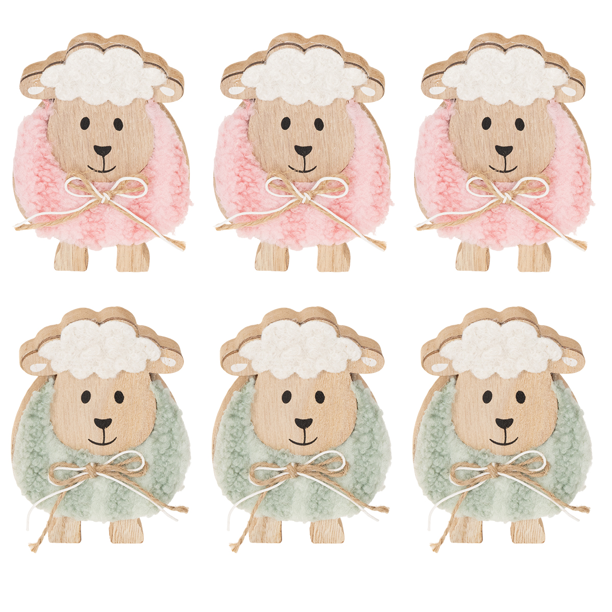 Ovelhas decorativas de madeira, figuras fofas para decoração de primavera e Páscoa, enfeite de mesa, 11 cm, 6 peças