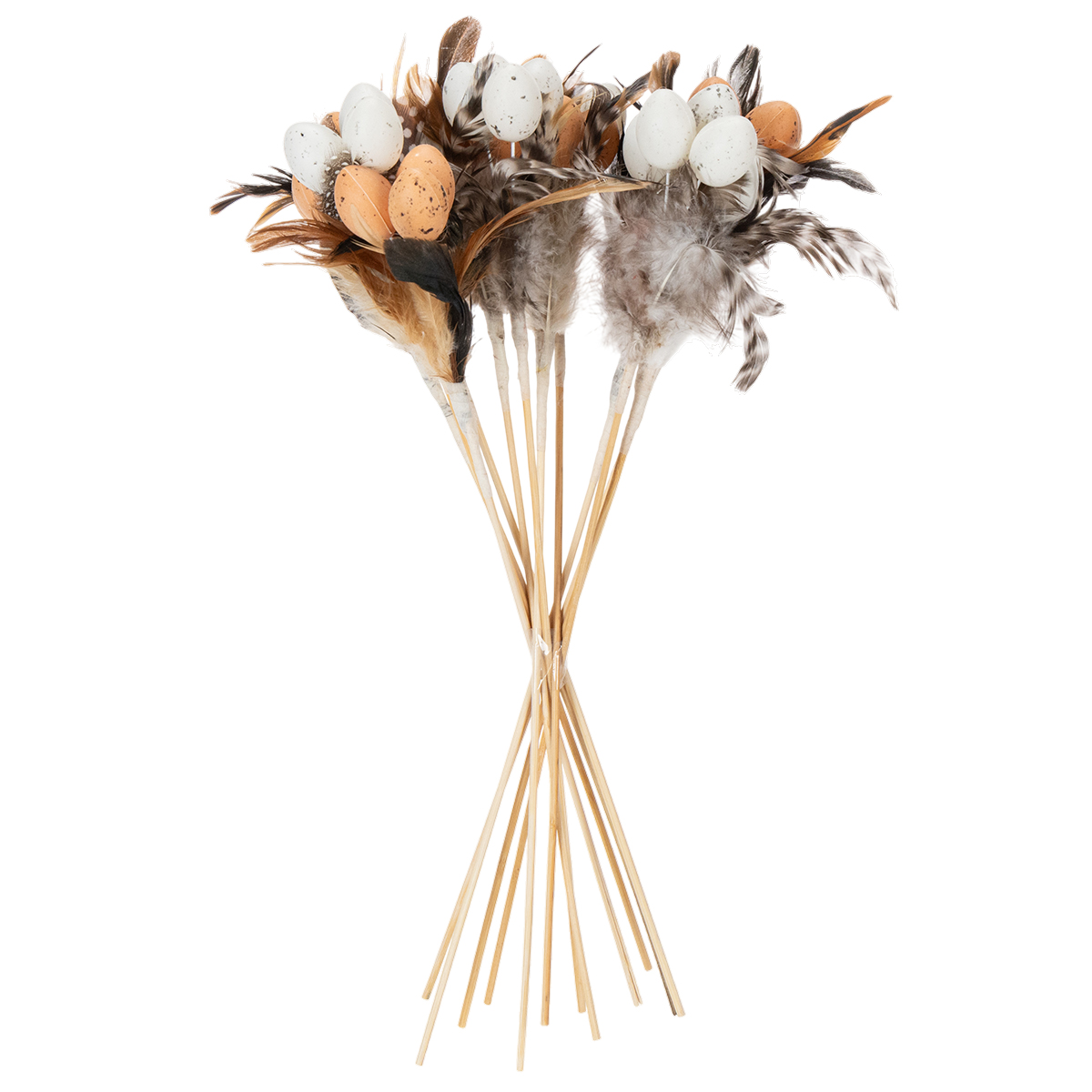 Ovos de codorna artificiais, penas decorativas em um palito, 36 cm, 12 peças