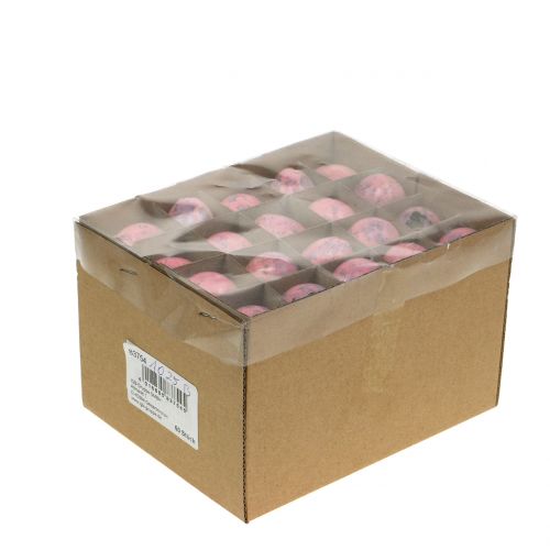 Os ovos de codorna em rosa claro estão disponíveis em um conjunto de 50 peças, que são entregues com segurança em uma caixa com tampa transparente. O tamanho dos ovos é de cerca de 3 centímetros.