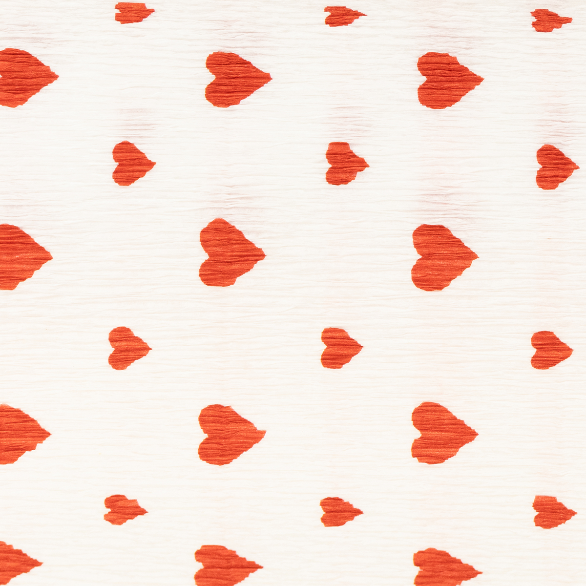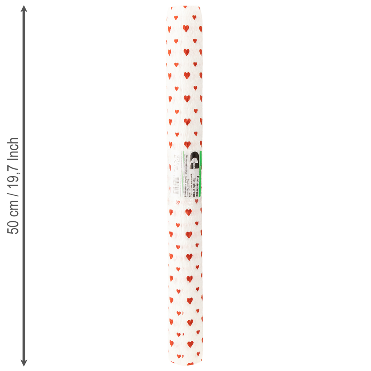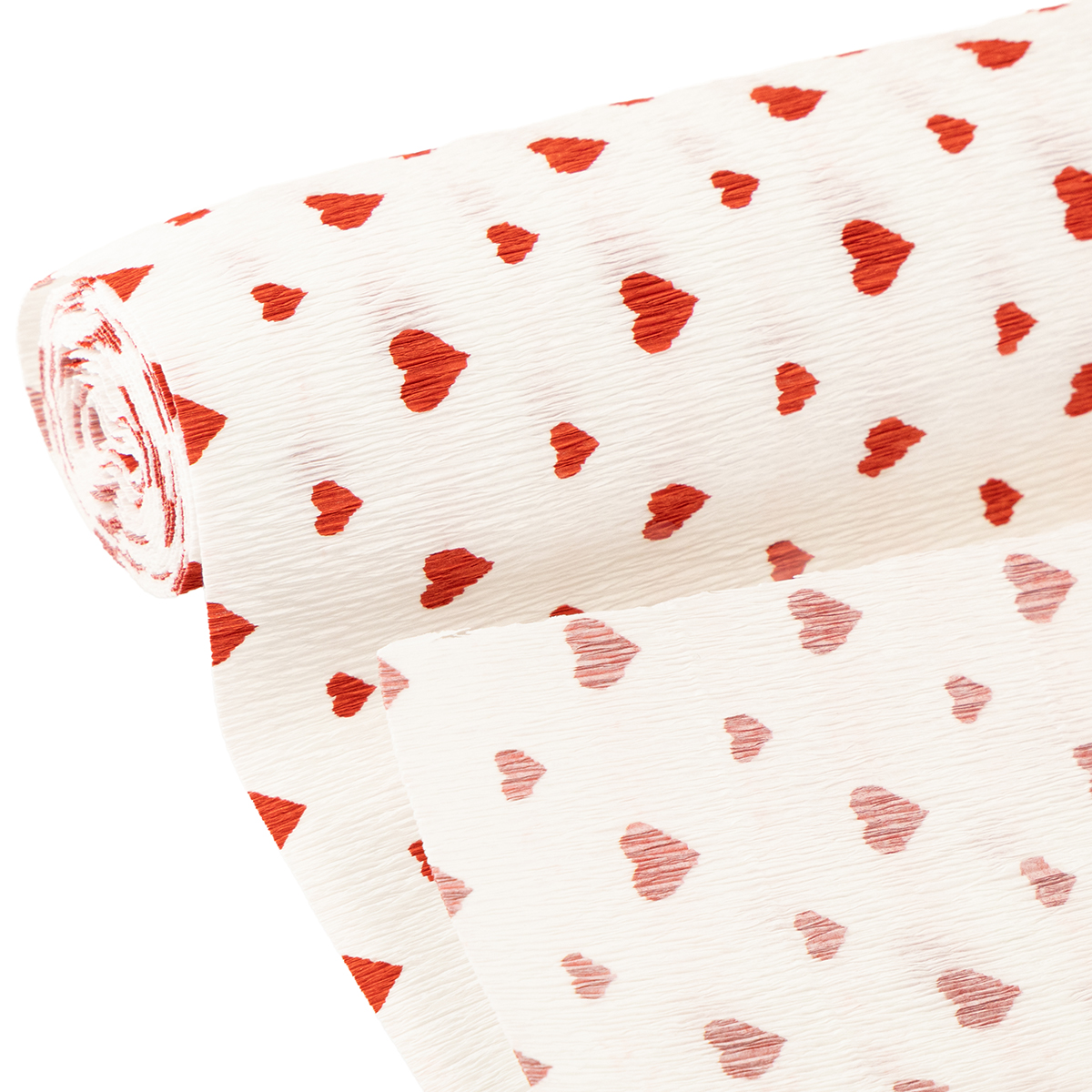 Papel Crepom com Corações Crepe Florista Dia das Mães Vermelho, Branco 50×250cm