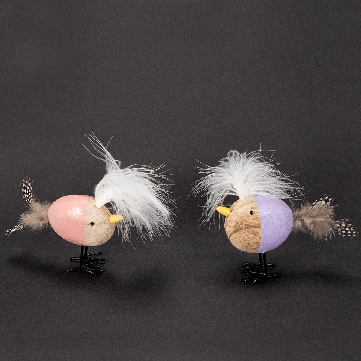 Procurando uma decoração única e encantadora que espalhe alegria? Nossos pássaros decorativos de madeira com penas verdadeiras são perfeitos! Com seus detalhes cuidadosamente trabalhados à mão e vibrantes tons de roxo e rosa, eles criam uma atmosfera harmoniosa em sua casa. Seja como decoração de mesa para uma celebração de primavera, um destaque no parapeito da janela ou um enfeite divertido no aparador, esses passarinhos de madeira são verdadeiramente versáteis. E você reparou nas delicadas penas? Elas dão a cada pássaro um toque único e individual. Simplesmente encantadores!