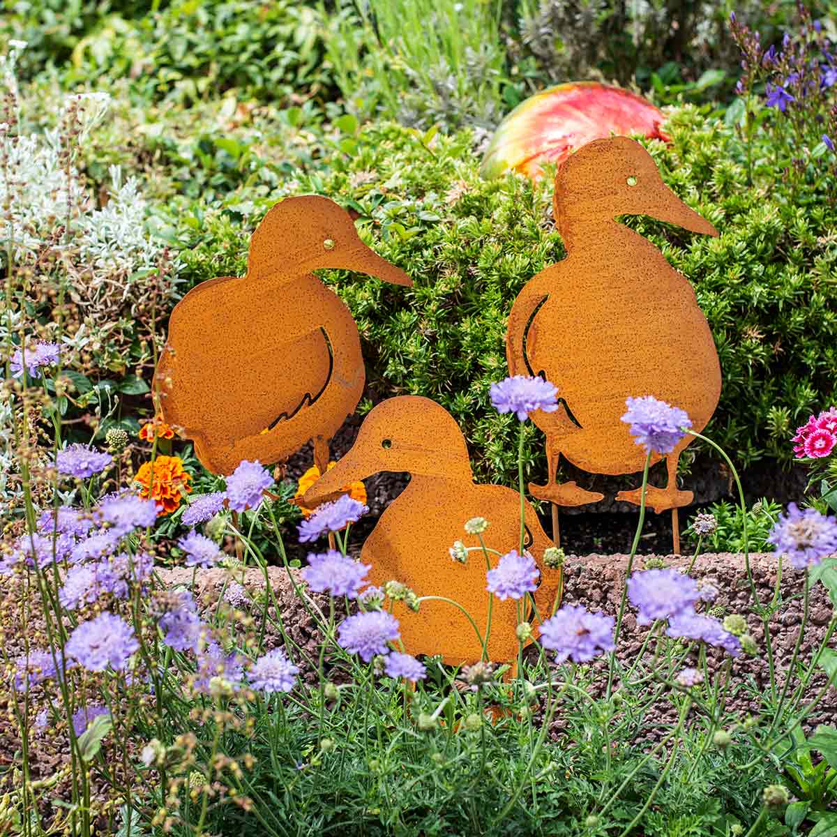 Patos de estaca de jardim de pátina H33cm/35cm/37cm conjunto de 3