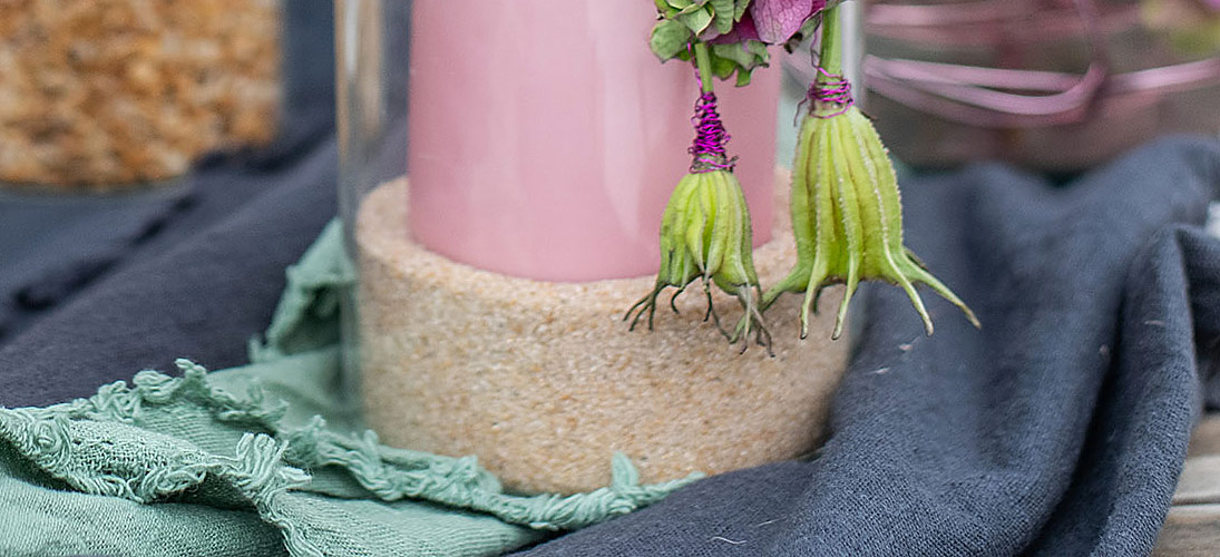 Muitas belas idéias de design podem ser implementadas a partir de areia, vidro, pedras e grânulos. Na floricultura, areia decorativa, grânulos decorativos e pedras decorativas são ferramentas populares usadas para refinar arranjos florais artísticos para casamentos, aniversários e outras celebrações.
