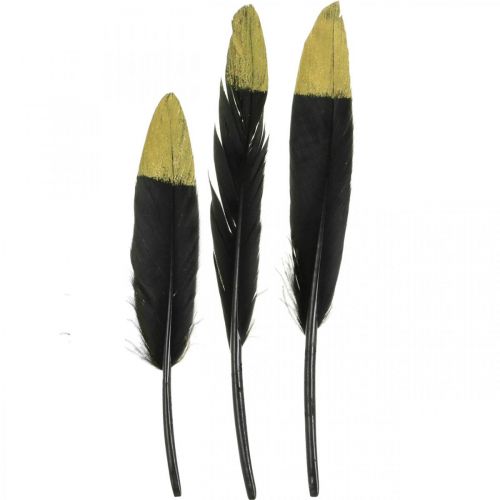 Penas decorativas pretas, penas reais douradas para artesanato 12-14 cm 72 unidades