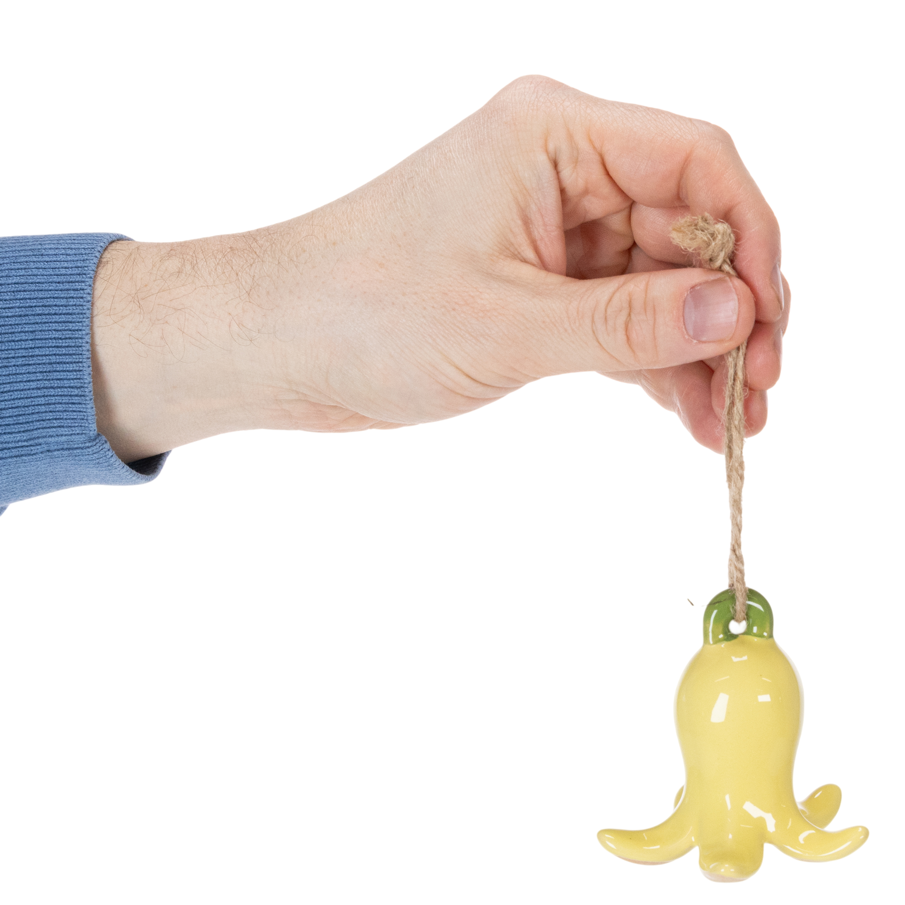 Detalhes únicos – Elegantes pingentes de flores em cerâmica amarela.