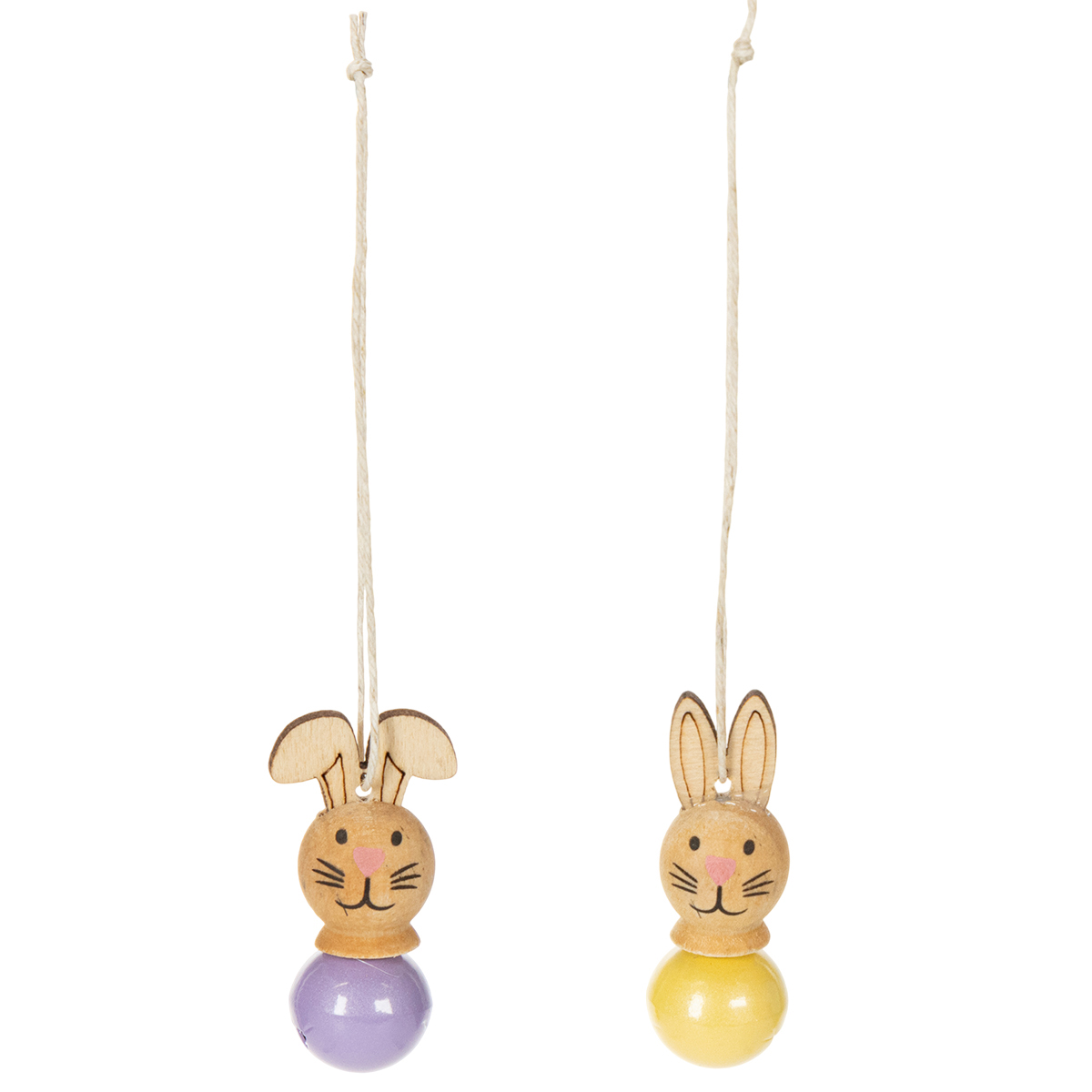 Nossos pendentes decorativos em formato de coelho combinam um design encantador com opções versáteis de decoração. Cada um dos doze pendentes é feito de madeira de alta qualidade e tem aproximadamente 4 cm de tamanho – o tamanho ideal para se encaixar facilmente em qualquer ambiente. Os rostinhos dos coelhos são esculpidos com grande atenção aos detalhes: um narizinho, olhos alegres e linhas delicadas – simplesmente adoráveis! Um toque encantador são os pequenos sinos de metal coloridos, em cinco tons pastel. Eles adicionam um toque divertido e produzem um som suave ao menor movimento.