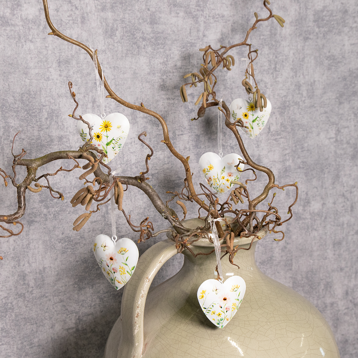 Que tal uma decoração de parede que traga aconchego, charme e um toque de romance para sua casa? Nossos pingentes de coração com estampas florais se encaixam perfeitamente em qualquer ambiente e criam uma atmosfera maravilhosamente convidativa! Você ama o visual natural e quer dar um toque especial à sua casa? Então você vai se encantar com esses pingentes de coração para pendurar. Os delicados motivos florais não são apenas bonitos, mas também criam uma harmonia lúdica entre o romantismo e o estilo campestre. Seja como um destaque na sala de estar, um toque acolhedor na entrada ou um charme extra em um vaso de flores, esses pingentes são o detalhe perfeito para completar sua decoração. A superfície metálica branca, levemente brilhante, confere a qualquer ambiente um toque moderno e atemporal. E a melhor parte? Você recebe seis desses pingentes de coração, cuidadosamente desenhados, que você pode combinar como quiser!
