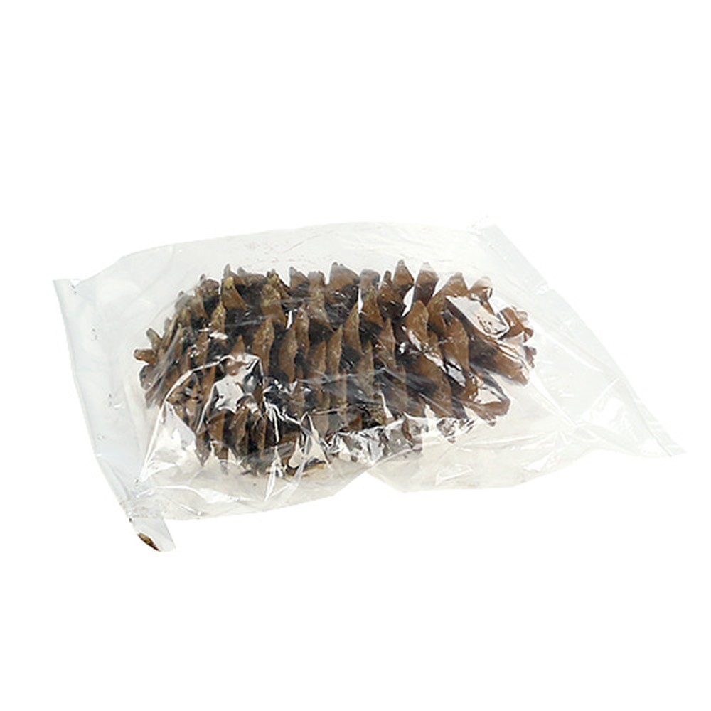 Os cones naturais do pinheiro-manso têm cerca de 25 centímetros e, sendo um produto natural, podem variar ligeiramente de tamanho dependendo da embalagem. O cone descolorido apresenta diferentes tonalidades de castanho que, dependendo do ângulo de visão, apresentam um grande jogo de cores e criam um padrão que lembra ligeiramente o pêlo malhado de um leopardo. Assim, você também pode usar os impressionantes cones maravilhosamente para a exibição de sua vitrine e criar uma decoração com temas de floresta, inverno, outono ou até mesmo Natal. Mas também no peitoril de sua janela, em uma tigela decorativa para a mesa da sala ou na sua decoração de Ação de Graças, a grande casquinha de pinho-de-açúcar sabe pontuar e é uma mais-valia para o seu espaço de vida.