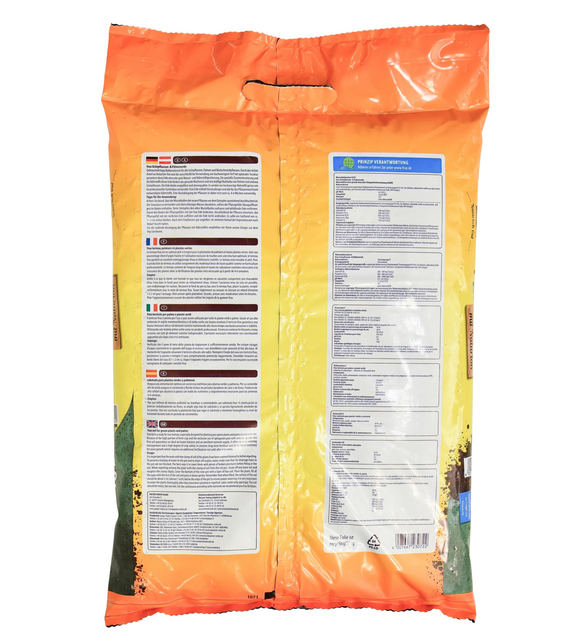 Planta verde Frux e solo de palmeira com fertilizante de longo prazo 10l