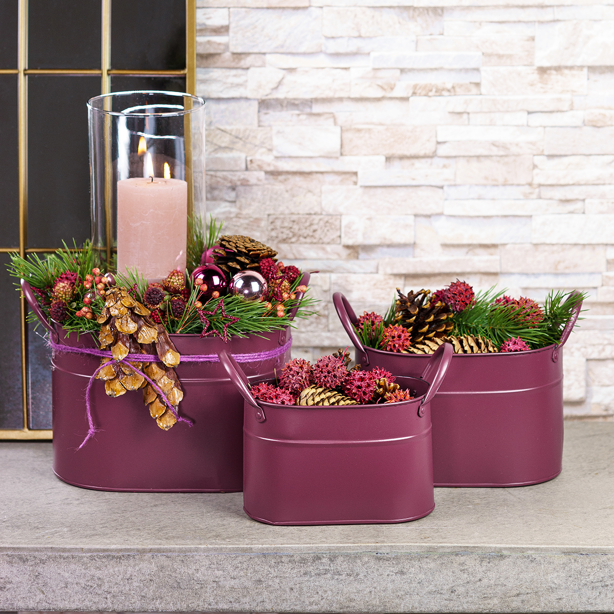 Plantador de metal oval vaso roxo 24/21/18cm conjunto de 3 peças