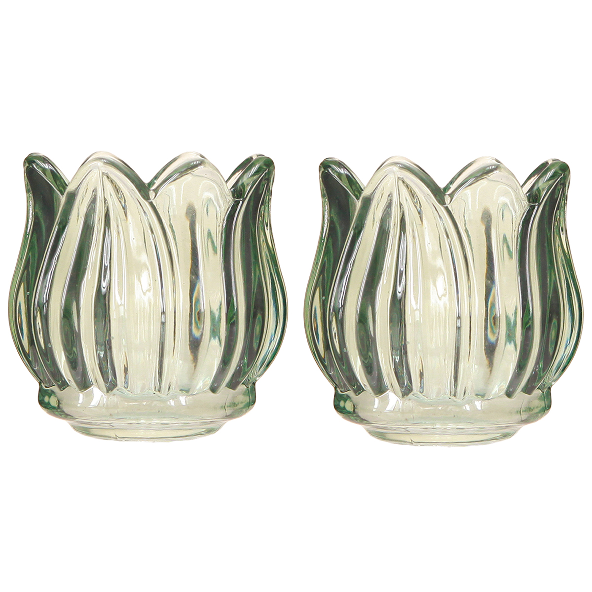 Porta velas de vidro porta velas tulipa verde Ø7cm H7cm 2 peças