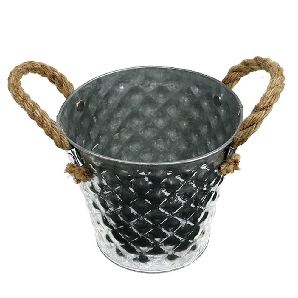 Pote de zinco com alças de corda Ø14,5cm H13cm