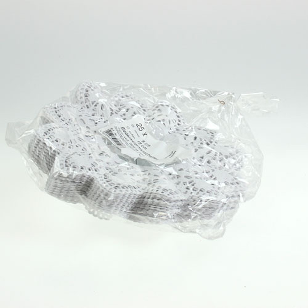 Os punhos Biedermeier na cor branca são fornecidos em embalagem de fornecimento com um total de 25 peças e todos têm um diâmetro exterior de cerca de 18 centímetros. O diâmetro interno é de cerca de 8 centímetros. Você também tem a opção de colorir os punhos e desenhá-los individualmente.