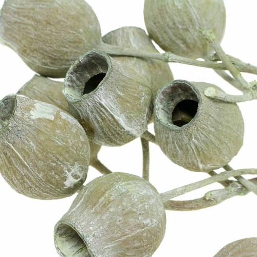 Os usos possíveis para esses frutos secos são absolutamente diversos. Eles são particularmente populares na floricultura, para arranjos de flores, recipientes de luto ou como outros acessórios em arranjos. Os Bellgums também ficam muito bem como decoração dispersa em uma mesa ou como um material de enchimento em um vaso de vidro.A fruta em cápsula é altamente lignificada, extremamente estável e, portanto, pode ser processada individualmente. Têm uma coloração muito suave de verde e dão um efeito especial para que o ramo pareça ter sido fosco.Você receberá os ramos decorativos com frutas em um pacote de 20. Cada fruta tem cerca de 2 a 5 centímetros de tamanho.