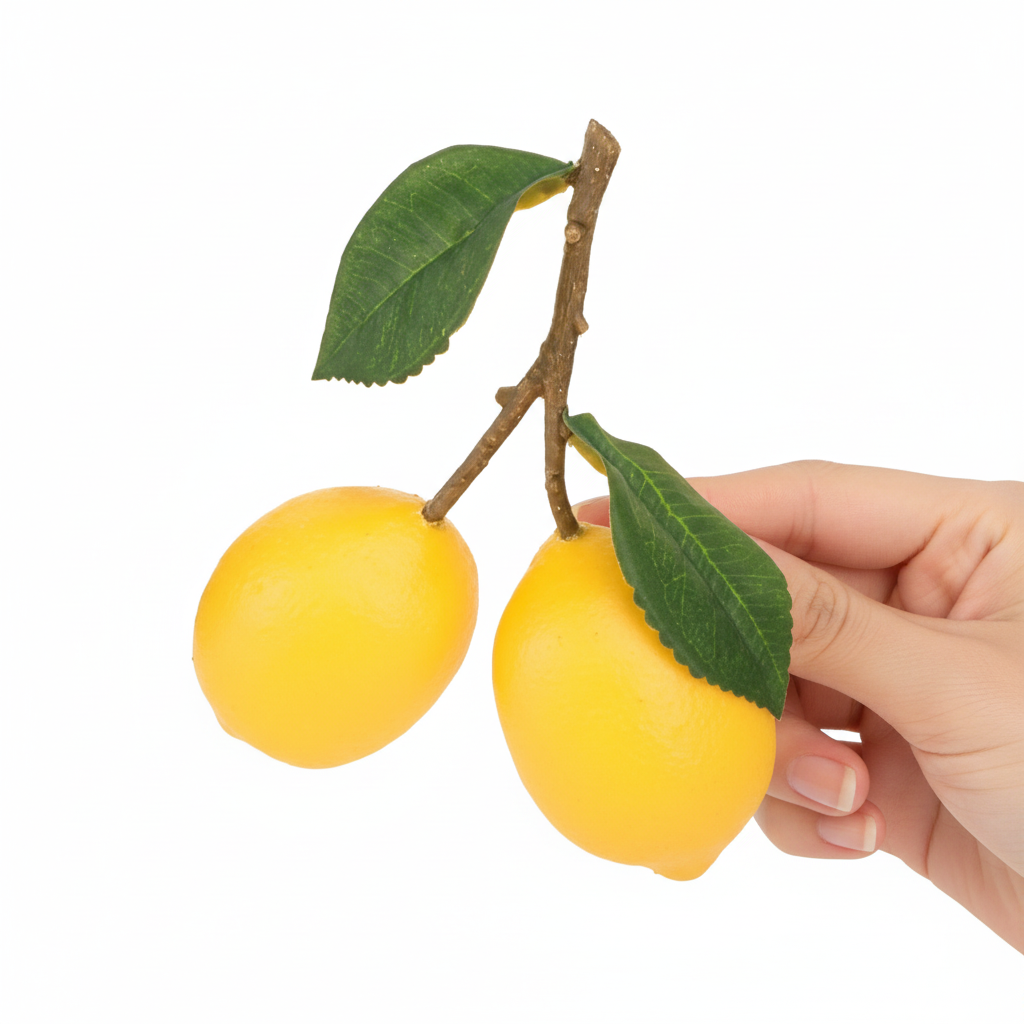 - Limões decorativos artificiais em um galho – 2 limões por galho com aproximadamente 16 cm de comprimento