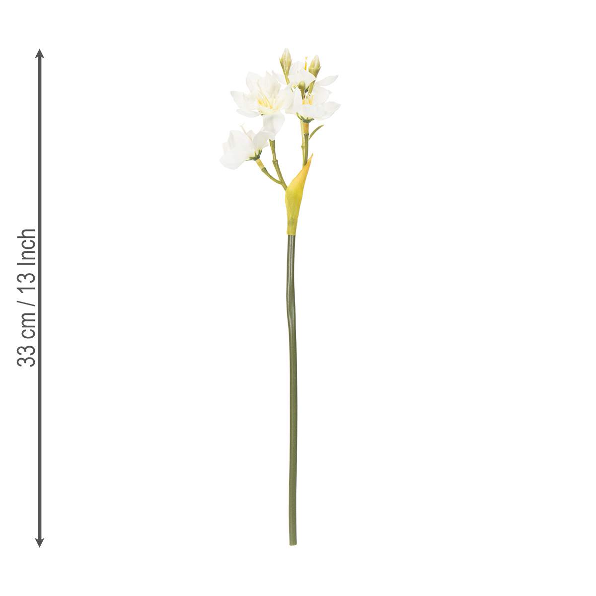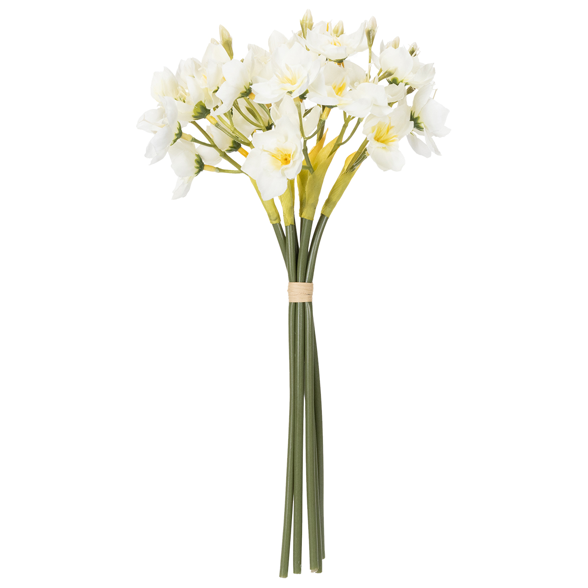 O complemento perfeito para a decoração do seu casamento ou para arranjos florais sazonais: nosso ramo de narcisos combina beleza e praticidade. Imagine como essas flores brancas, artisticamente elaboradas, irão complementar a decoração da sua mesa ou criar um buquê de noiva romântico. Seus convidados ficarão encantados! Com 33 cm de comprimento e um design realista, esses narcisos artificiais parecem ter sido colhidos recentemente – e tudo isso sem qualquer manutenção.