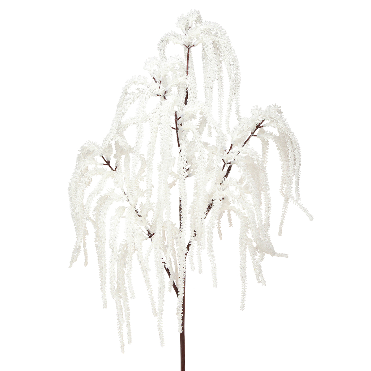 O salgueiro-chorão (*Salix babylonica*) muitas vezes representa flexibilidade e adaptabilidade, pois os ramos incorporam força e flexibilidade. Na versão de inverno, este ramo decorativo simboliza estabilidade e beleza eterna, perfeito para ocasiões festivas na estação fria. O uso do branco e do glitter reforça o caráter festivo e puro da decoração. O branco tradicionalmente representa pureza, inocência e paz e traz calma à agitação das férias.