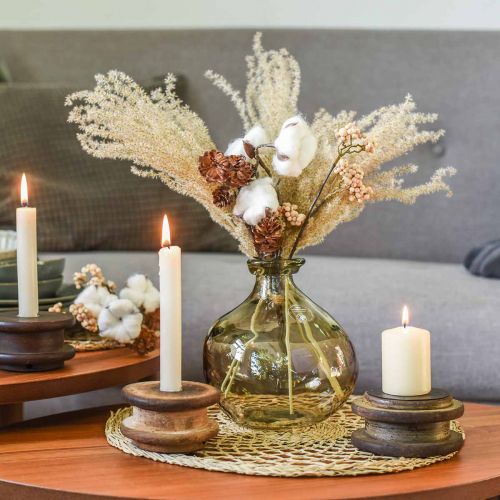 A mistura decorativa de ramos proporciona variedade com o verde do abeto artificial ou na coroa do Advento. O trio é tão bonito quanto um buquê de decoração de inverno no vaso. Ou quer criar um pequeno arranjo para a decoração da sua mesa com os ramos decorativos? Então, tudo o que você realmente precisa é de uma vela colorida. Aliás, a ilusão dessas plantas artificiais é perfeita entre alguns ramos reais: elegância na vitrine ou como um pequeno chamariz na área de entrada, os ramos com cones, algodão e bagas trazem um clima natalino natural. As flores secas da moda também vão bem com os ramos decorativos!