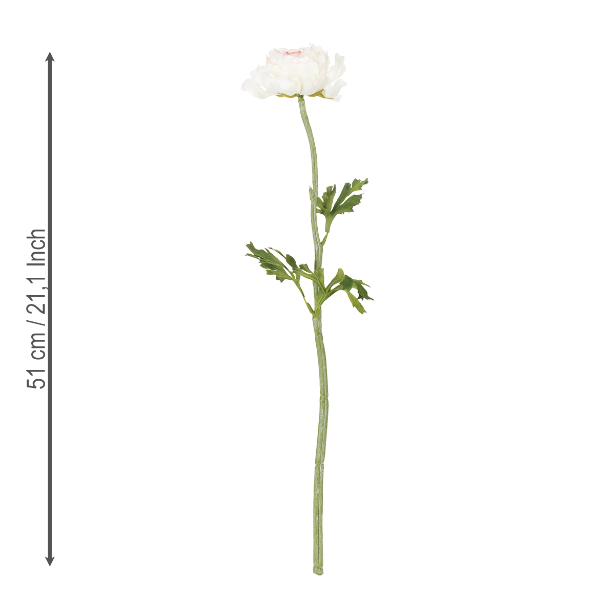 Este ranúnculo artificial é um sucesso em todos os sentidos: com 51 cm de comprimento e uma haste fina, oferece diversas possibilidades para dar asas à sua criatividade. As delicadas flores de seda de alta qualidade e as folhas de plástico com detalhes intrincados parecem tão realistas que é preciso olhar duas vezes para perceber que são artificiais. Graças à sua durabilidade, esta flor artificial é especialmente indicada para quem aprecia a beleza das flores, mas não quer o trabalho de cuidar delas regularmente.