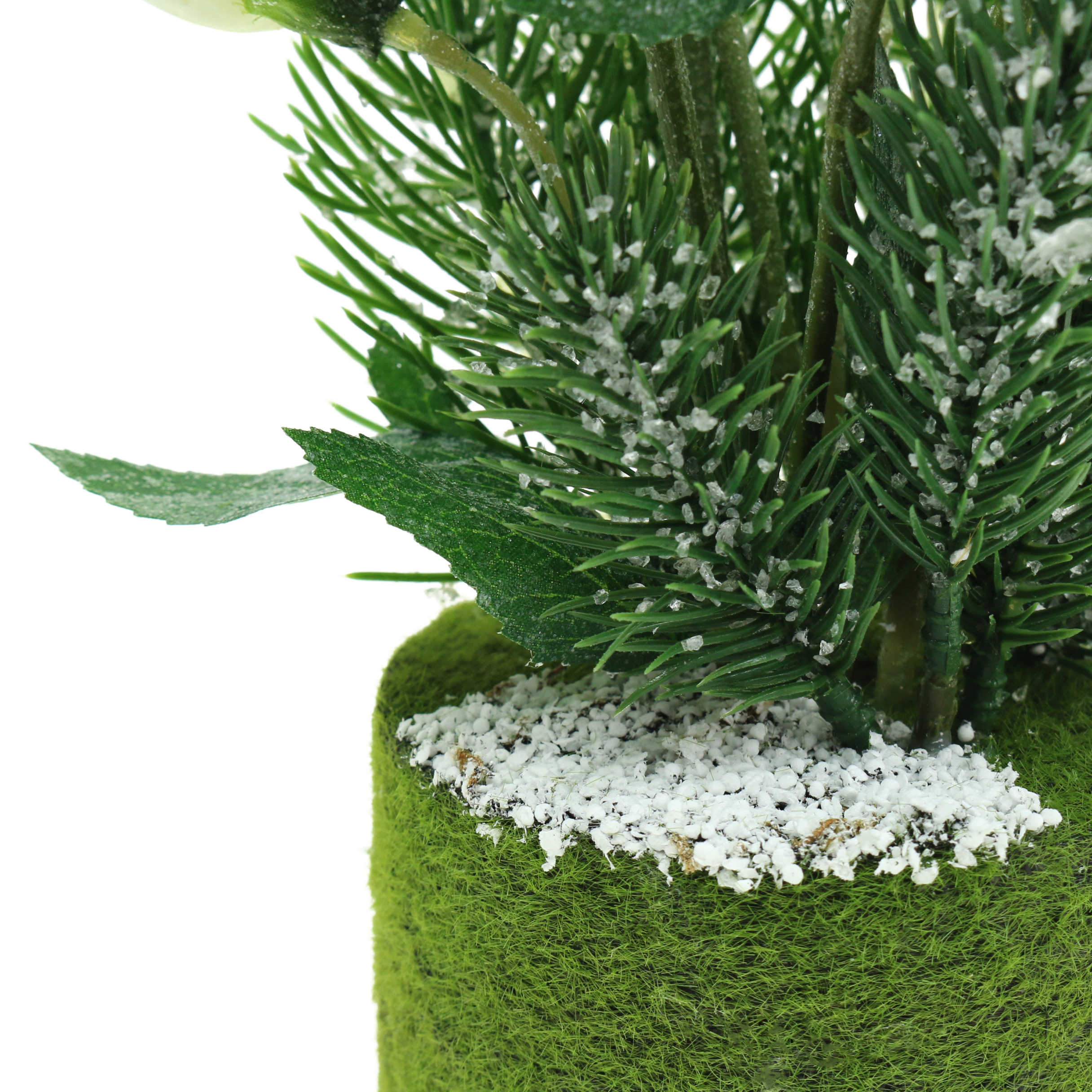 Rosa de Natal com abeto e bolas de musgo nevado artificialmente branco 33cm