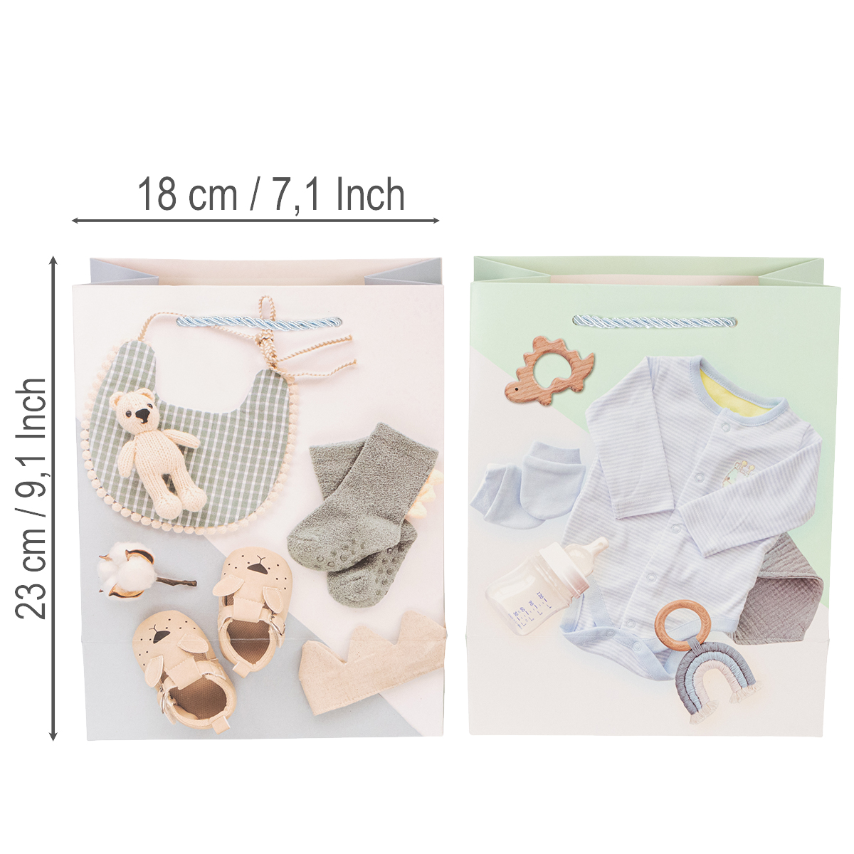 Procurando uma maneira elegante e prática de apresentar presentes para um menino com carinho? Estas charmosas sacolas de presente para meninos, em um prático conjunto de duas, exibirão seu presente perfeitamente – seja para um chá de bebê, o nascimento ou um presente de boas-vindas emocionante. Feitas de papel resistente e medindo aproximadamente 23 centímetros, estas sacolas oferecem amplo espaço para roupas, brinquedos ou outras pequenas lembranças. São a escolha ideal para embrulhar presentes com estilo e praticidade.