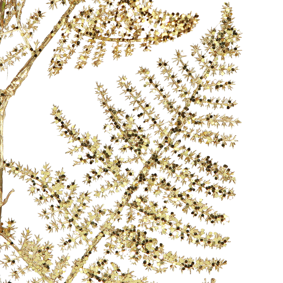 Transforme sua casa em uma terra de conto de fadas com a samambaia artificial dourada brilhante em forma de espargos, a samambaia decorativa de espargos. A decoração glamorosa adiciona um toque festivo a qualquer ambiente - perfeita para uma luxuosa mesa de Natal ou como um toque elegante em seu vaso.