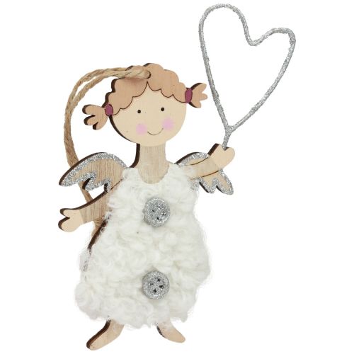 Anjo de natal com coração decorações para árvores de natal madeira 14,5 cm 8 unidades