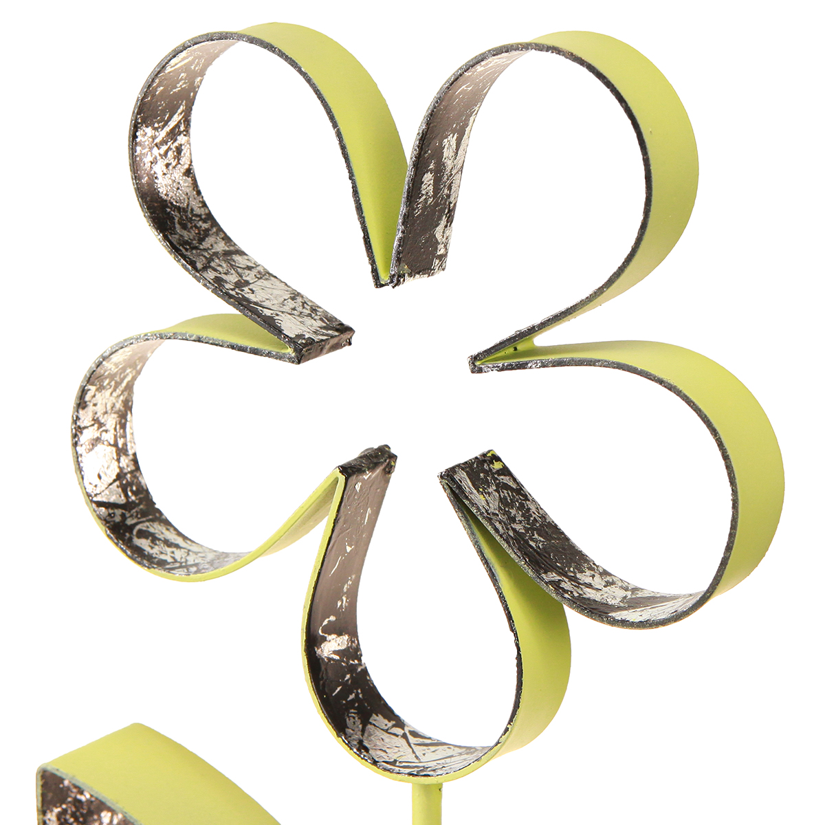 Suporte decorativo base de flor em metal verde prata Alt.29cm