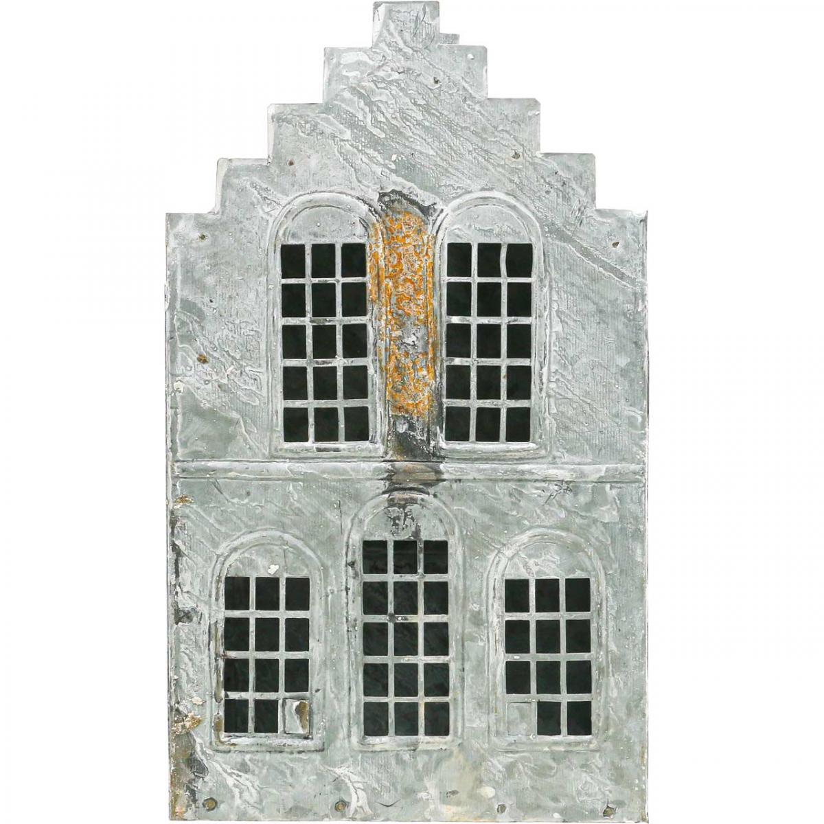 A casa de metal tem um telhado de duas águas pontiagudo sobre o qual fica uma lareira aberta. A frente do farol é particularmente bem trabalhada. No telhado da casa tealight, a frente da casa tem uma forma de escada, sob a qual existem cinco janelas altas.