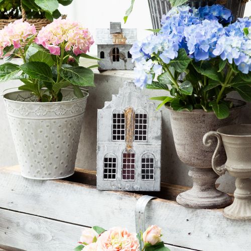 A casa de luz de chá tem uma porta na parte de trás para enchê-la com velas, luzes de chá ou luzes LED. Os dois recessos na parte traseira também são práticos para pendurar o farol na parede.