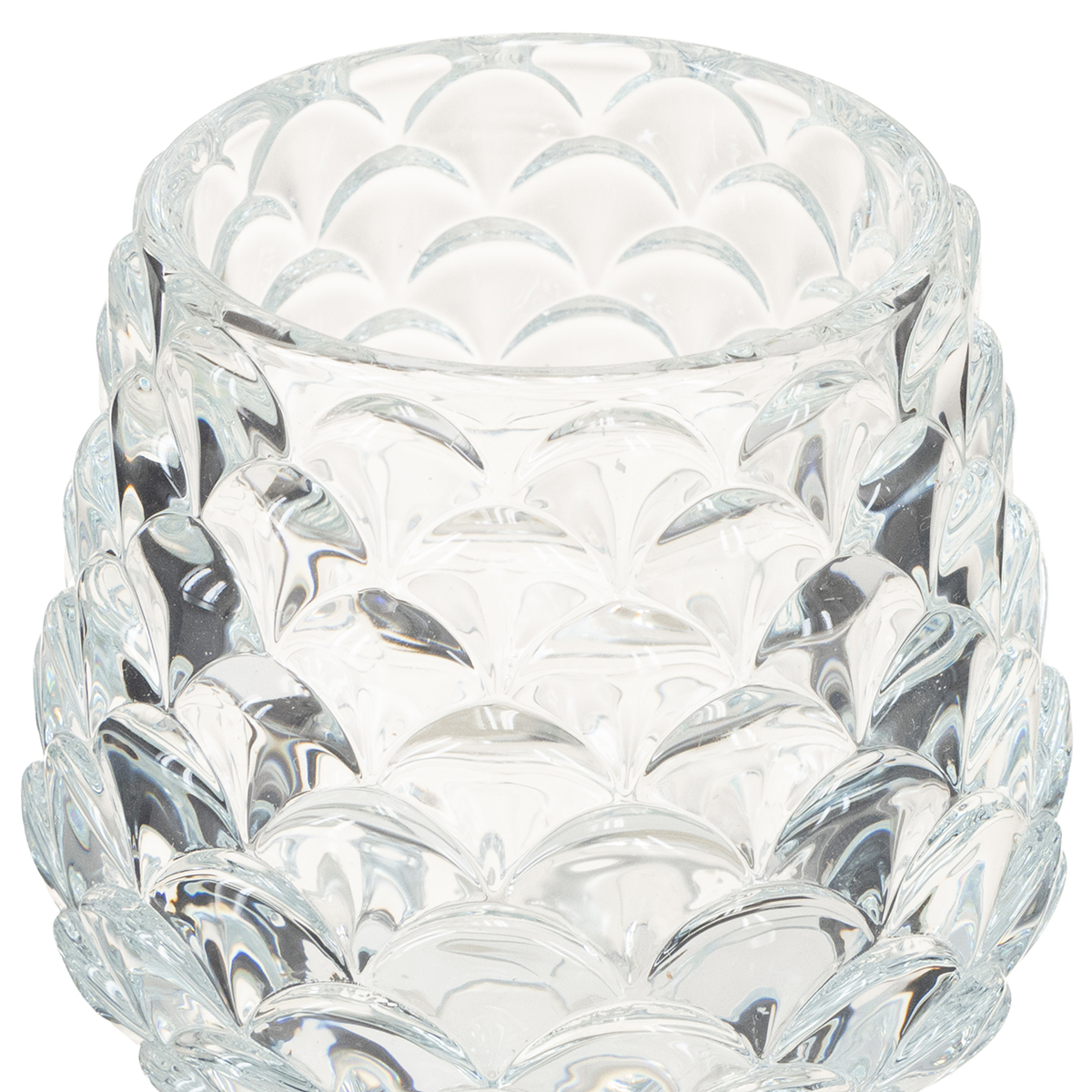 Às vezes, são os pequenos detalhes que fazem toda a diferença. Você adora criar um ambiente aconchegante e convidativo com luz e decoração? Então você vai adorar os "Suportes para Velas de Vidro com Cones e Base"! Este conjunto, composto por dois suportes para velas de diferentes alturas, impressiona pela sua elegância simples e design sofisticado, que combina perfeitamente com uma ampla variedade de estilos de interiores. As lâminas de vidro transparente lembram uma pinha encantadora – delicadas, elegantes e atemporais. Seja para chamar a atenção na sala de estar, um destaque na mesa de Natal ou uma fonte de luz romântica para uma noite aconchegante: estes suportes para velas são verdadeiramente multifacetados!