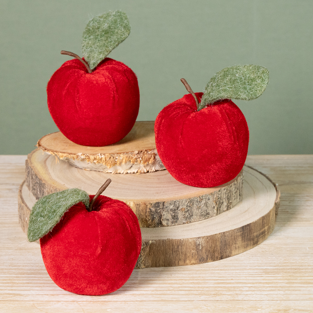 Tecido decorativo de maçã com veludo de folha e feltro vermelho Ø7,5cm H9cm 9 peças