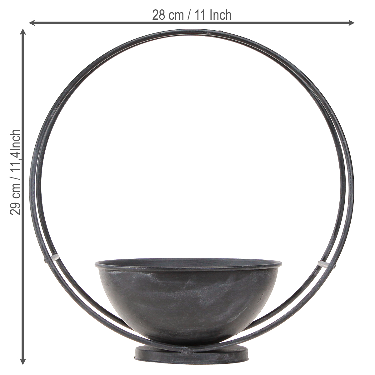 A nossa tigela com pé combina elegância e funcionalidade versátil num design moderno. Esta tigela decorativa de metal impressiona pela sua cor antracite atemporal, que transmite um toque de estilo industrial, e é ideal como decoração de mesa. O anel decorativo de dois fios no qual a tigela está embutida garante estabilidade e uma aparência atraente. Esta tigela de cor antracite com suporte é perfeita como plantador, decoração com flores secas ou plantas artificiais modernas. A tigela adapta-se elegantemente a várias tendências de vida, como o estilo minimalista, e complementa conceitos de mobiliário modernos e clássicos com a sua elegância simples. Descubra como esta tigela decorativa pode melhorar o seu espaço em combinação com outros itens da Floristik24.